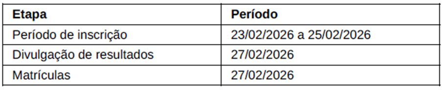 Confira o Edital de vagas remanescentes para o 1º semestre de 2026