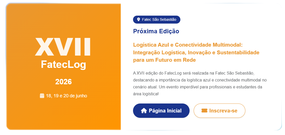 Agendado para os dias 18, 19 e 20 de junho de 2026, o FatecLog é um evento de destaque no cenário acadêmico e profissional da Logística. Fundado em 2010, em Jundiaí, o congresso é organizado pelo Comitê de Coordenadores do Curso Superior de Tecnologia em Logística das Fatecs, que reúne representantes de 24 unidades espalhadas pelo Estado de São Paulo.